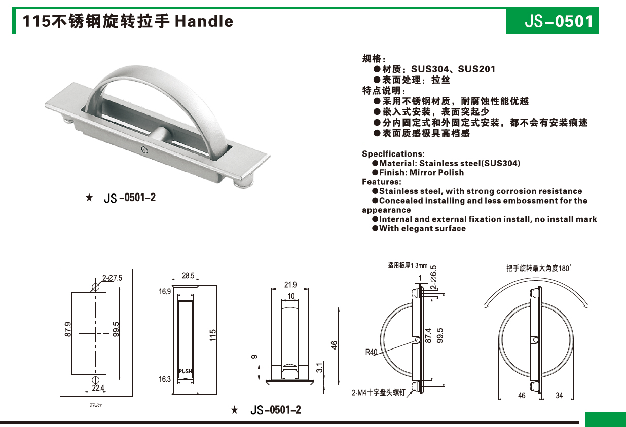 Cast 304 stainless steel solid decorative hardware handle