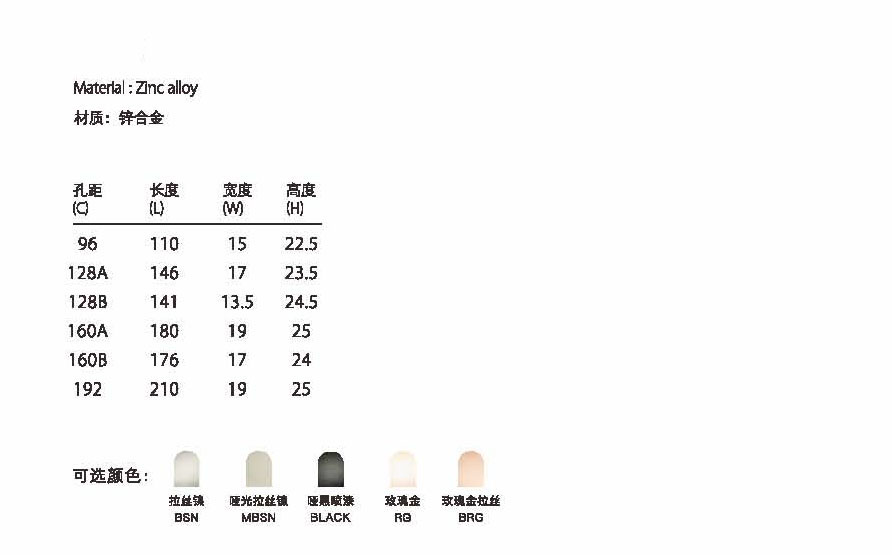 | CC: | 96mm,128Amm,128Bmm,160Amm,160Bmm,192mm | Color: | BSN/MBSN/BLACK/RG/BRG |